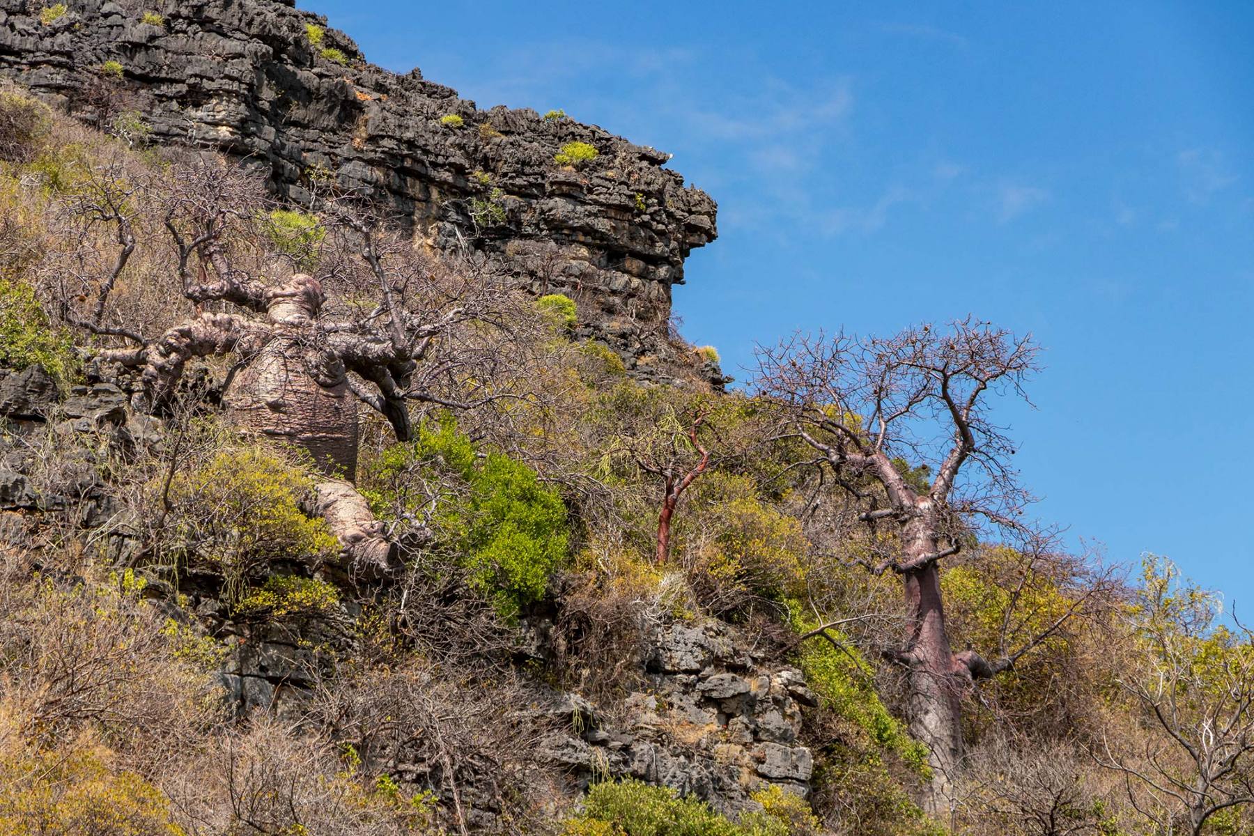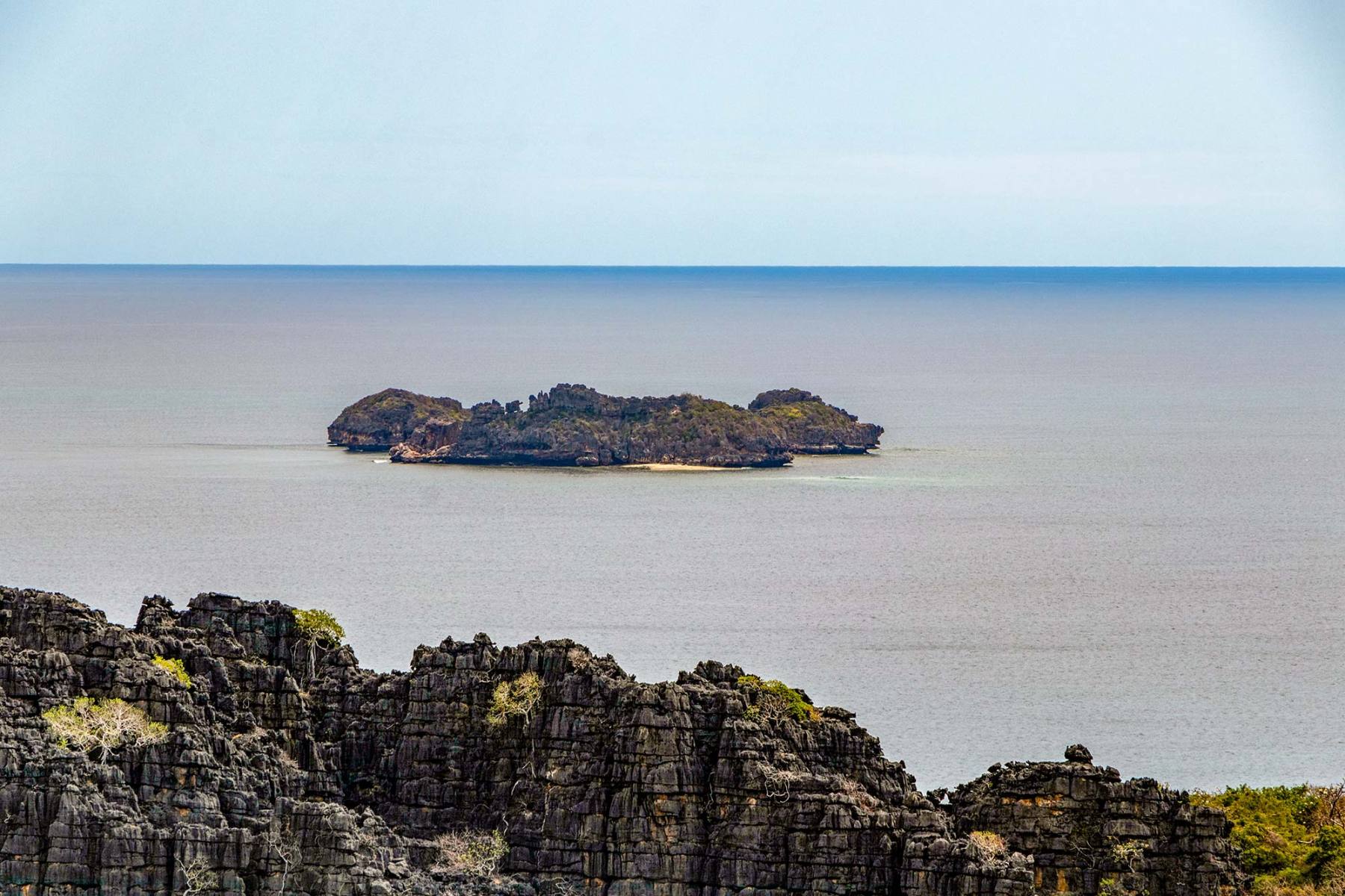 Les îlots de Nosy Hara se distinguent par leurs formations rocheuses acérées, appelées tsingy, qui émergent directement de la mer. Ces reliefs impressionnants créent un décor spectaculaire, entre falaises calcaires, grottes marines et criques isolées accessibles uniquement en bateau.