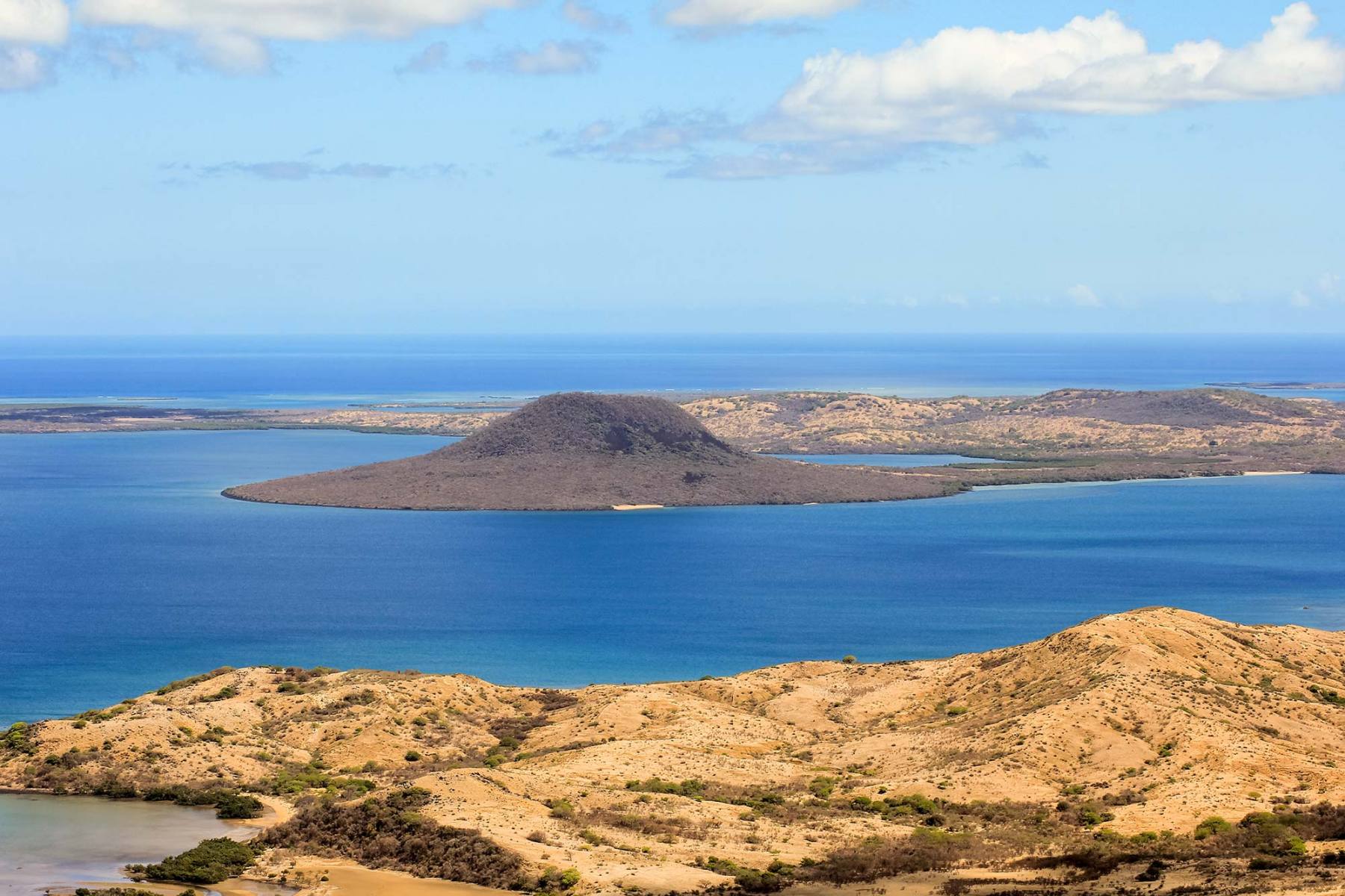 la Baie du Courrier, Ampasindava et l’archipel de Nosy Hara à l’ouest, ainsi que la Montagne d’Ambre visible au loin